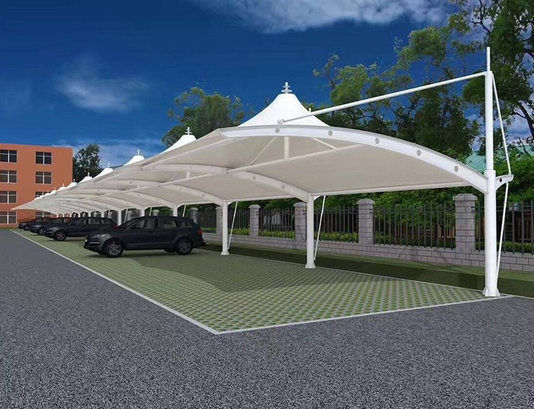 現代建筑環境是現代城市、現代文化與社會、現代人的生活和觀念的綜合表象。張拉膜結構車棚作為現在社會不可缺少東西,早已成為大眾型的服務必備設施,停車棚、膜結構、景觀棚三者合一,展現出別具一格的風味。
