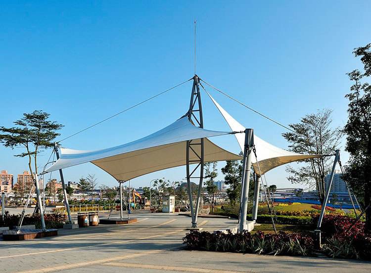 戶外膜結(jié)構(gòu)小品是景觀中的點睛之筆,一般體量較小、色彩單純,對空間起點綴作用。小品既具有實用功能,又具有精神功能。戶外膜結(jié)構(gòu)小品的出現(xiàn),提高了整個空間環(huán)境的藝術(shù)品質(zhì),改善了城市環(huán)境的景觀形象,給人們帶來美的享受。